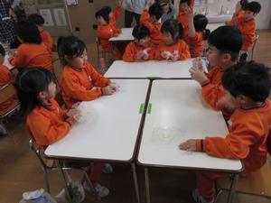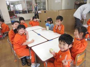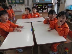 その後、自分でやさしく形を整え、おいしくいただきました。「おかわりしたい!」という声もたくさん聞かれました。