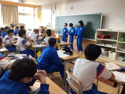 今日は、いろんなクラスへ行って呼びかけをし、ポスターをはりました。