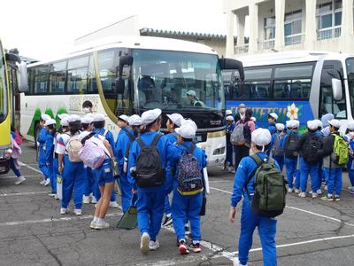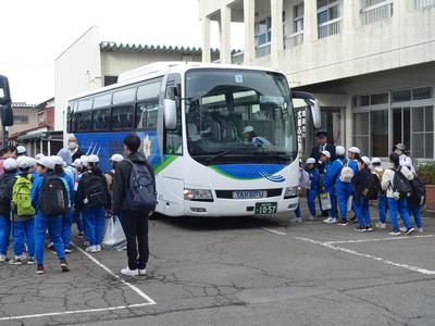 4年生が校外学習のため、嶺南方面へ出発しました。見学地は、①浦見運河(三方五湖)②縄文博物館 ③年縞博物館 です。しっかり学んできてくださいね。