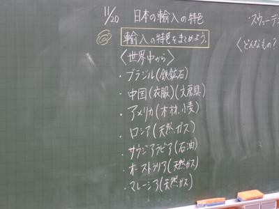 5年生社会の授業風景です。日本は外国からいろいろなものを輸入しています。今日は、日本がどのようなものを輸入しているのか、さらには、日本の輸入の特色について学習しました。