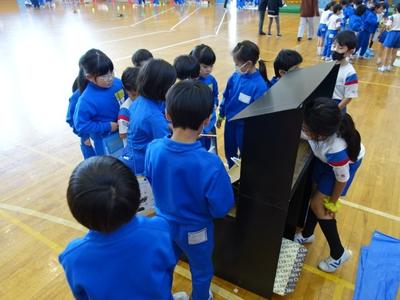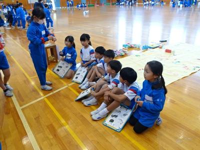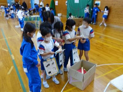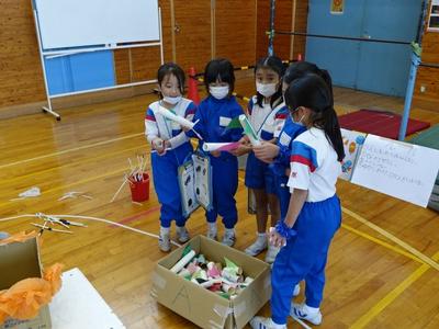 2年生がこれまで頑張って作ってきた「動くおもちゃランド」に1年生が招待されました。2年生はお店屋さん役に徹し、1年生に楽しんでもらうためにがんばってくれましたよ。1年生の皆さんも来年は2年生として、新1年生を招待するかもしれませんよ‼