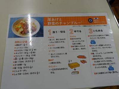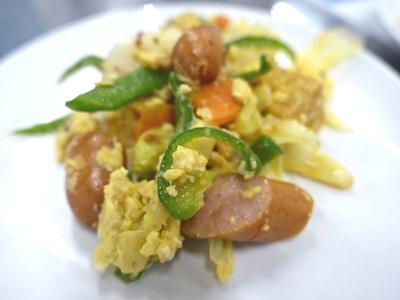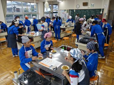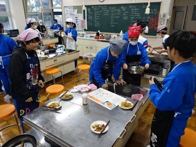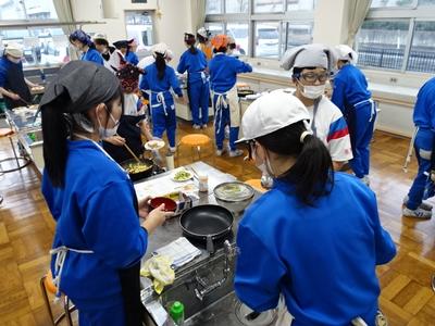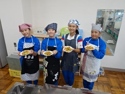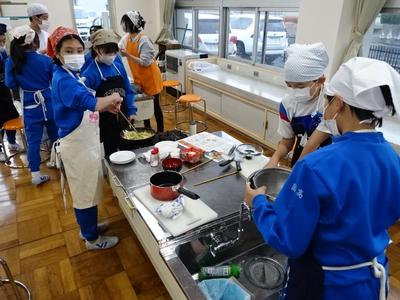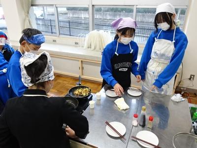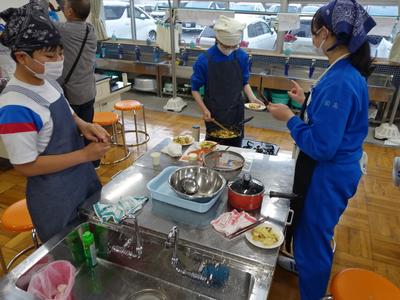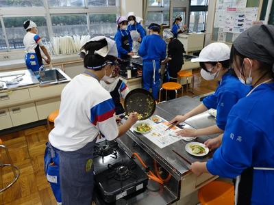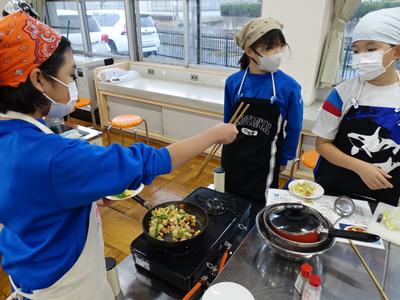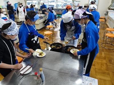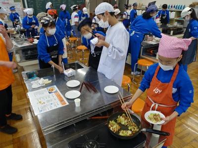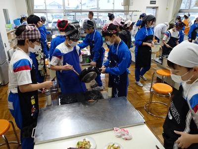 調理室からいいにおいが…。6年生が調理実習をしていました。今日作ったのは「厚揚げと野菜のチャンプルー」です。