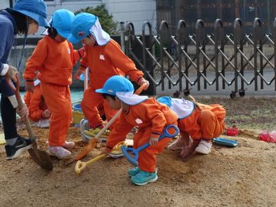 ふじ組とゆり組は『お話わくわくランド』の様子をお届けします。先生のポケットから出てくる不思議なものに、みんなすごい反応を見せています。たんぽぽ組は外遊びの様子です。今日はポカポカ陽気で、スコップで穴掘りをしている子がいましたよ。