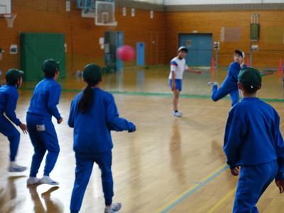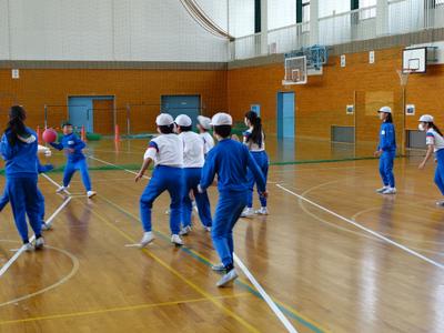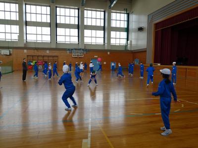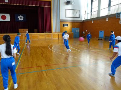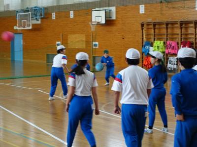 6年生が体育館でドッジボールをして楽しんでいます。使っているボールは2個。後ろからボールが来るときもありますが、ソフトバレーボールなので大丈夫ですね。みんな仲良くプレーしていましたよ。