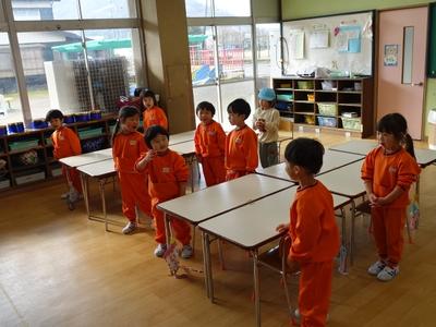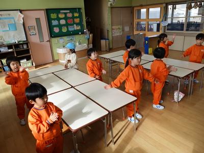 園児の今日の様子をお届けします。たんぽぽ組さんは『朝の会の様子』、ゆり組さんは『避難訓練の振り返り』、ふじ組さんは『自由遊びの後始末』です。