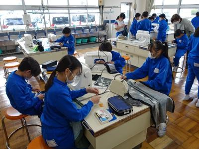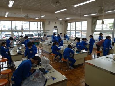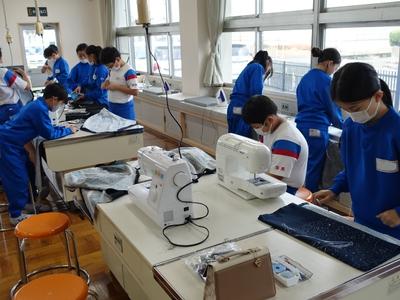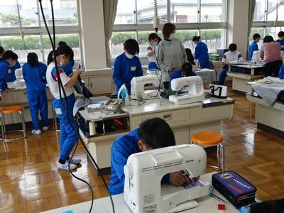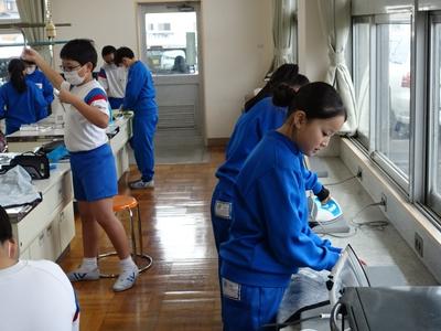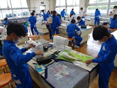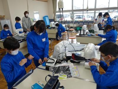 5年生は家庭科の時間にエプロンを作っています。今回は他のクラスの様子をお届けしますね。ミシンも上手に使えるようになってきましたよ。
