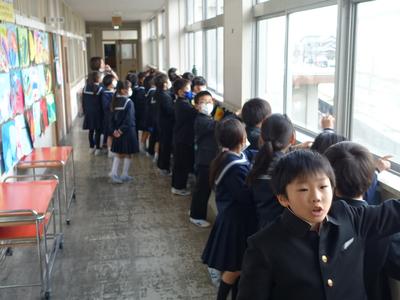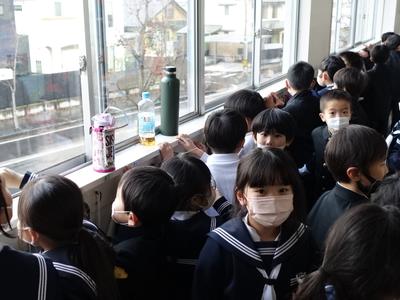 5時間目、2階の窓から虹が見えました。2年生の子が見つけ、みんなが廊下に出ました。美しいものを見ると、なんだか心も嬉しくなりますね。