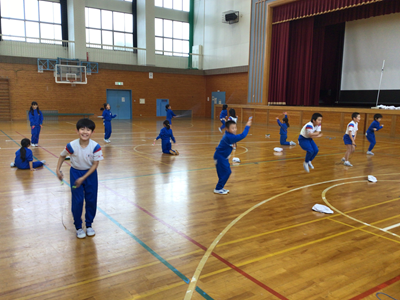 3年生が、体育の時間に縄跳びを行いました。ただいま、新しい技に挑戦中です‼