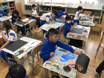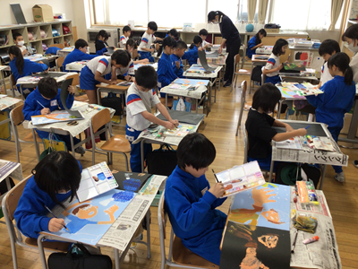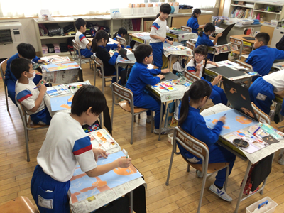 このクラスでも、版画の刷りに入る子が出てきました。満足のいく作品を作ってくださいね。