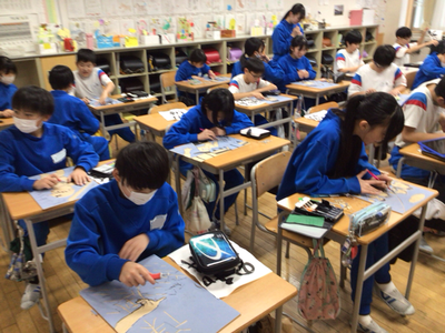 6年生が5時間目に版画の制作をしていました。彫りが完成間近のようですよ。