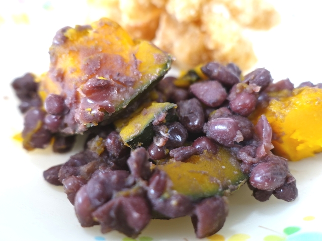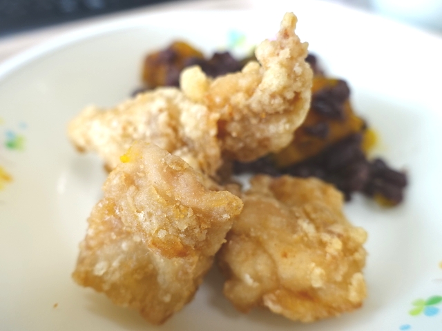 今日の献立は、ご飯 牛乳 鶏肉の唐揚げ かぼちゃのいとこ煮 えのきのすまし汁 です。今日は冬至です。冬至に相応しい献立でしたよ。
