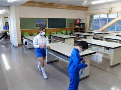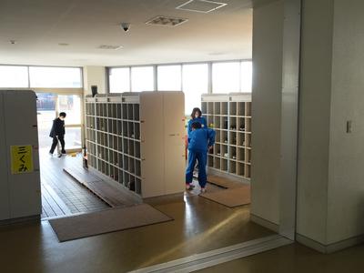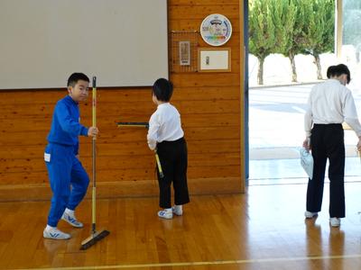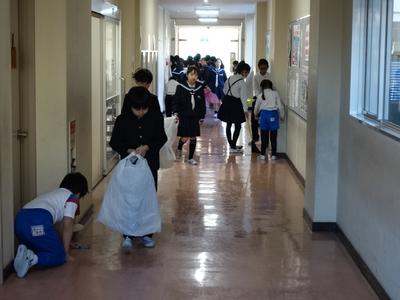 2学期最後の清掃です。明日から冬休みに入るので、校舎をきれいにしようと気合十分です。(おかげでピカピカです。みんな、ありがとうございます。)それでは、1階の清掃の様子を中心にお届けしますね。