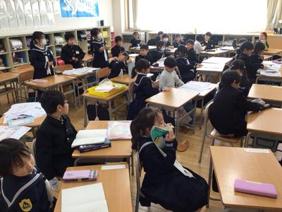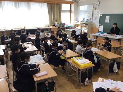 今日の大休みは校外班集会があります。1年生の教室では、自分の行く教室の確認が行われていました。(覚えている子がたくさんいました。みんな、しっかりしていますね。)