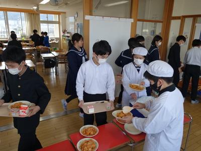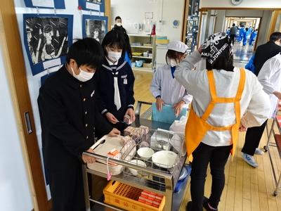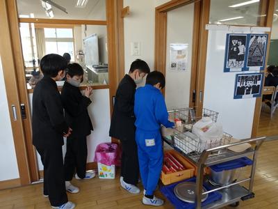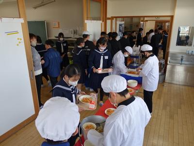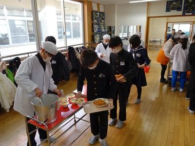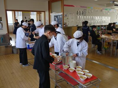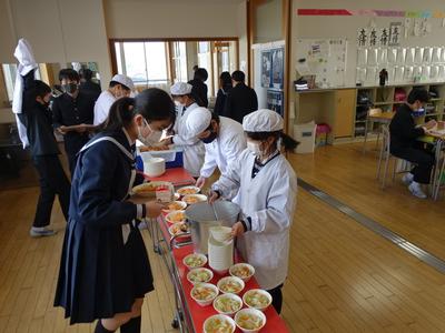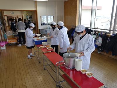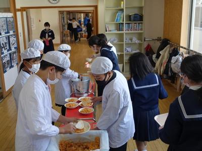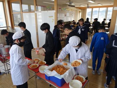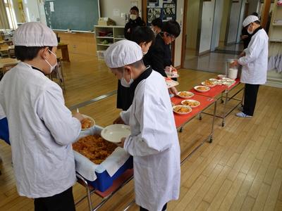 6年生の配膳の様子をお届けします。今日は給食後、下校となります。モリモリ食べて下校しましょう‼