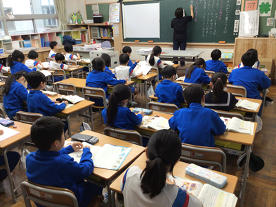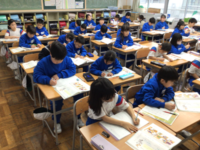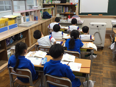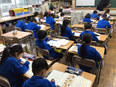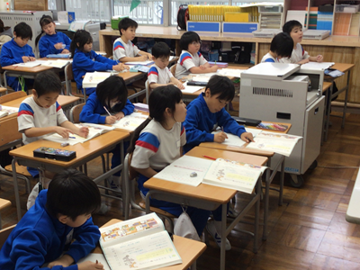 2年生国語の授業風景です。今日は『カタカナで書く言葉』を学習しました。動物の鳴き声、物の音はカタカナで書くことが多いですね。