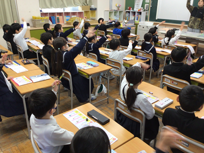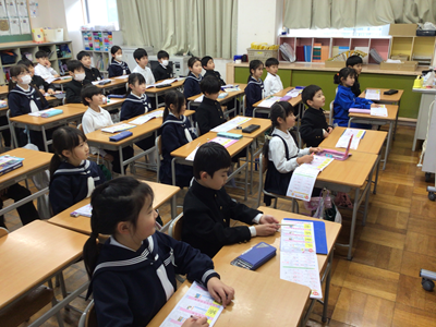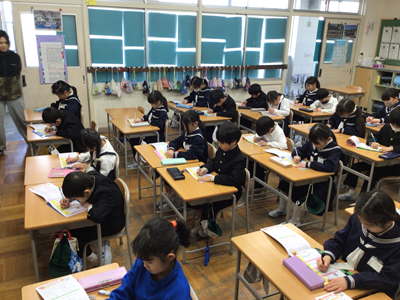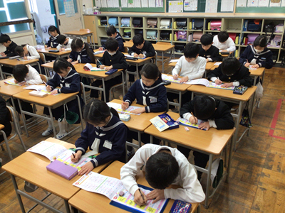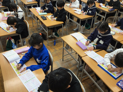 下の写真は、国語の時間に新出漢字の学習をしているところです。教室を覗いた時は、ちょうど『茶』という漢字を書いているところでした。