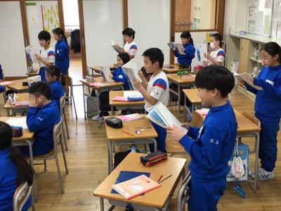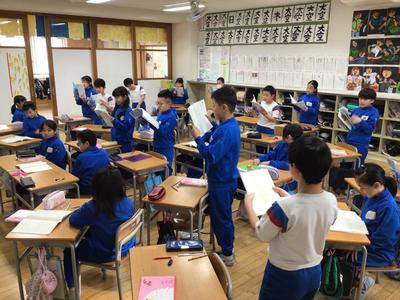 3年生の国語では詩の学習をしています。今日は、詩にどのような工夫がされているのか考えながら読みました。