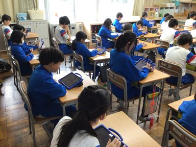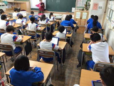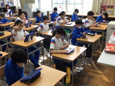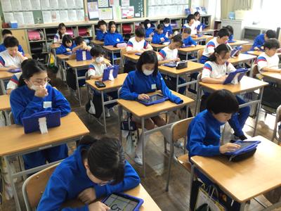 4年生算数の授業風景です。今日は、先生からタブレットに配信された問題を解きました。さすが4年生、タブレットの扱いも慣れたものですね‼