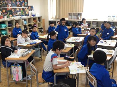 3年生では社会の時間に、警察署、消防署の役割等について学習しています。今日は、警察に通報するときに伝えなければならないこと(①事故の様子 ②場所はどこか ③自分の名前や電話番号)を確認しました。