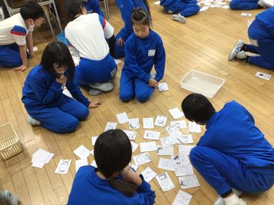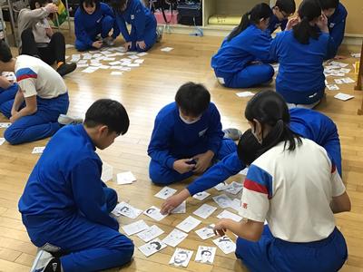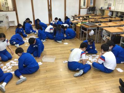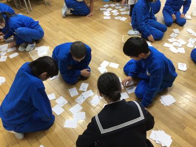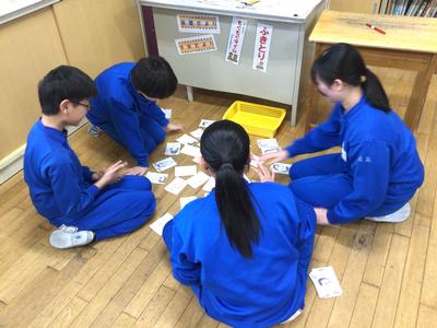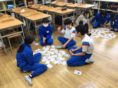 6年生が歴史の時間にかるたをしていました。よく見ると、『歴史上の人物かるた』で、しかも手作りでしたよ。(よくできています)このように工夫すると、楽しく覚えられますね。