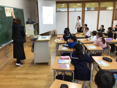 外国語活動にALTの先生が来てくださいました。今日学習したのは「ものの名前」です。先生の元気に負けないよう、みんなも大きな声で発音しました。