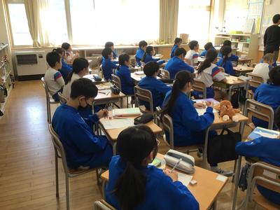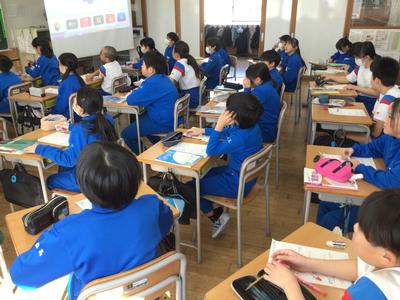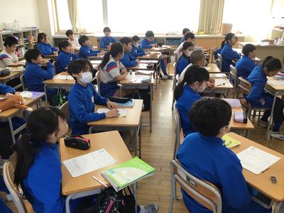 5年生算数の授業風景です。教室を覗いた時は、「割合」の復習をしていました。割合は、「~倍」「~%」「~割」など、さらには「~%引」「~割引」などいろいろな表し方がありますね。