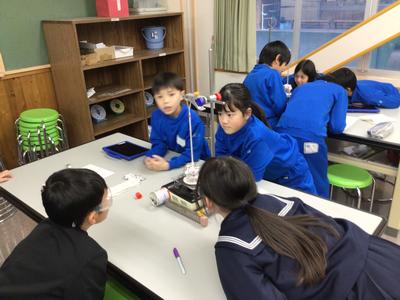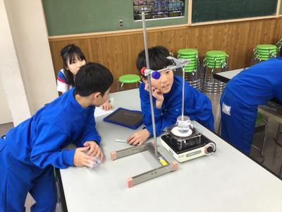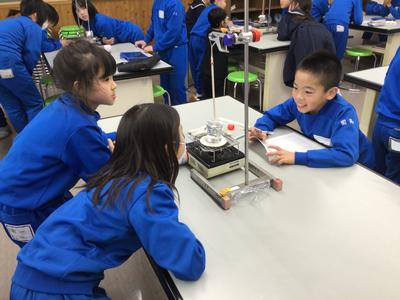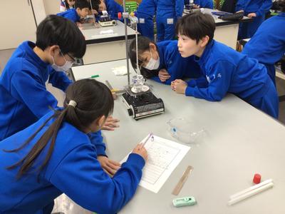 4年生が理科の時間に実験をしました。実験を行い、水を熱したときの温度とその時の様子をまとめました。(ちゃんと沸騰石も入っています‼)