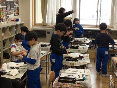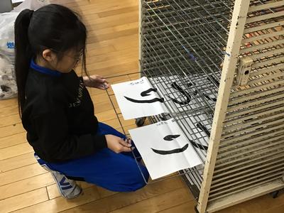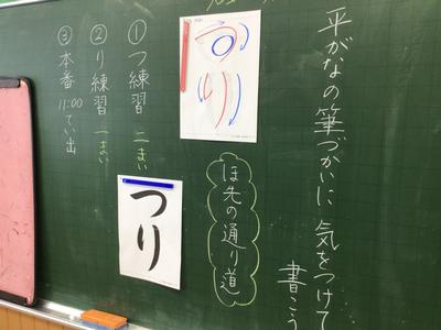 3年生書写の様子をお届けします。今日はひらがなの筆づかいに気を付けて『つり』という字を書きました。下の写真は清書を出し始めているところです。