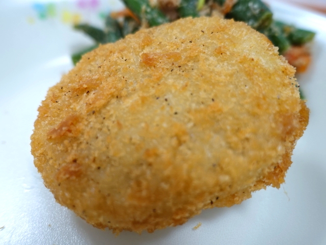 今日の献立は、ご飯 牛乳 ふくいSANコロッケ ツナといんげんの胡麻和え 豚汁 イチゴクリーム大福 です。ふくいSANコロッケは、ふくいポーク 、若狭牛、小松菜の3つの福井県産がコラボレーションしたコロッケです。福井の食材のよさがつまったコロッケをぜひ 味わってくださいね。