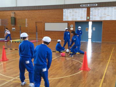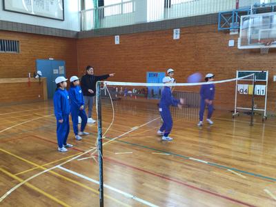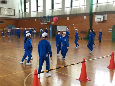 体育の時間にソフトバレーボールをしました。ラリーが続くよう、ワンバウンドOKのルールで行いました。