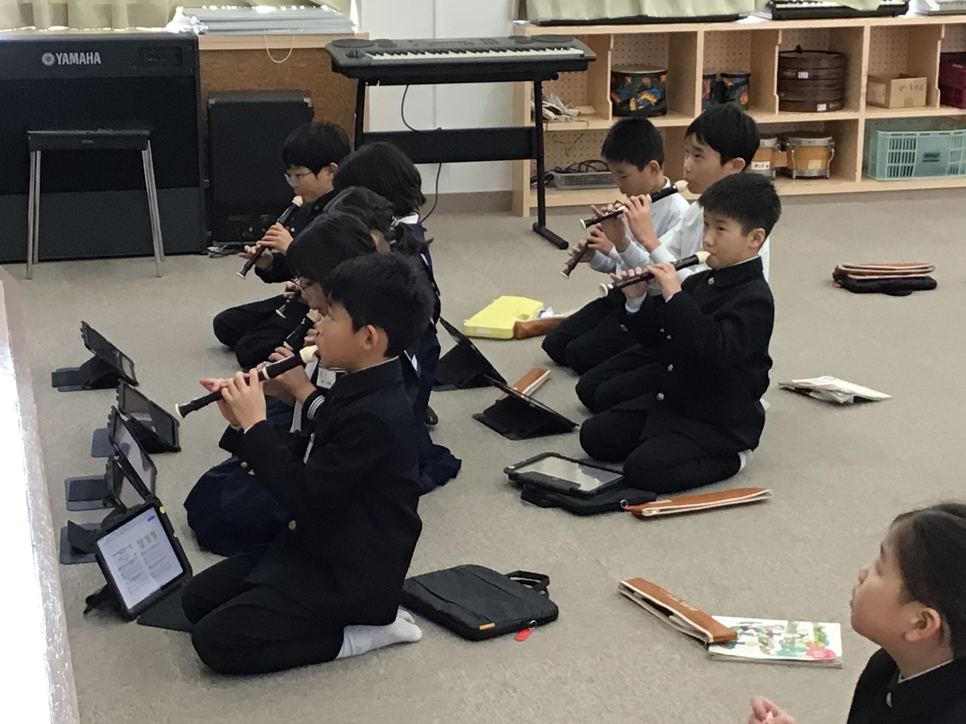 3年生音楽の授業風景です。今日は、重なり合う音の響きを感じ取りながら