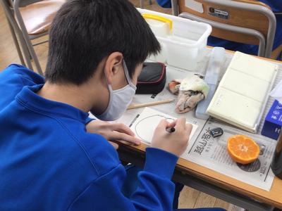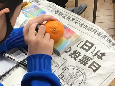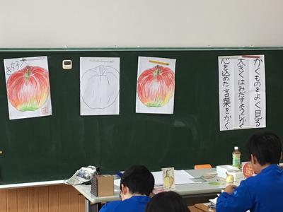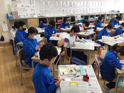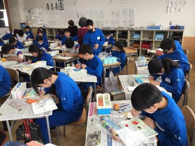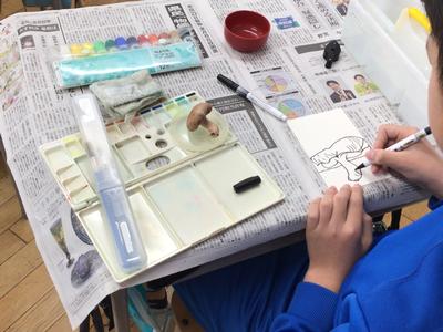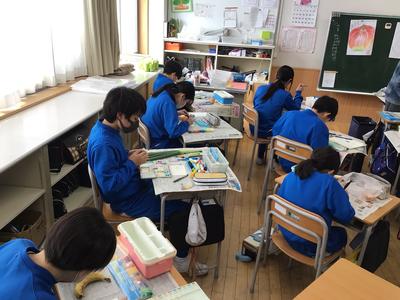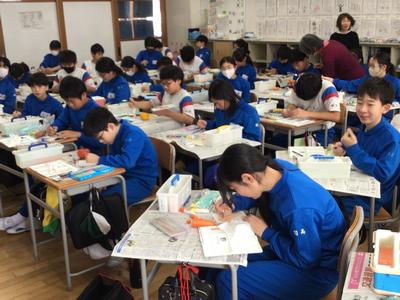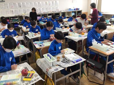 6年生が絵手紙に挑戦しました。みんな、題材となるものを家から持ってきたようです。ポイントは、①かくものをよく見る ②大きくはみ出すようにかく ③心をこめた言葉をかく の3つです。先生からアドバイスを受けながら丁寧に仕上げましたよ。(学校にお越しいただいた先生、ありがとうございました)