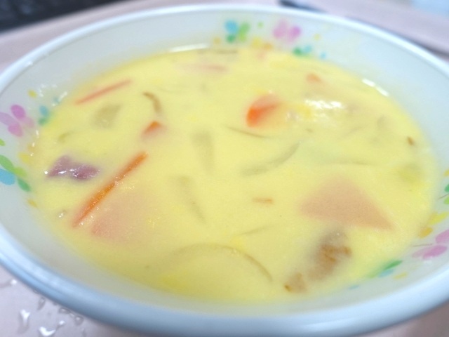 今日の献立は、カレーピラフ 牛乳 ボイルいんげん コーンポタージュ です。3時間目の休み時間から、カレーピラフを楽しみにしている子がいましたよ。(美味しかった?)