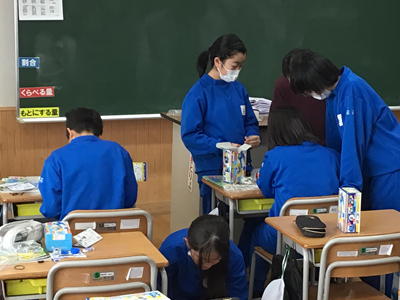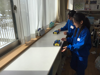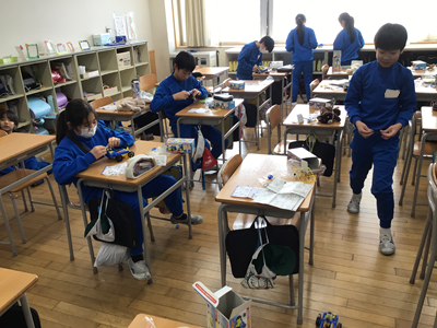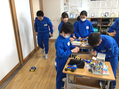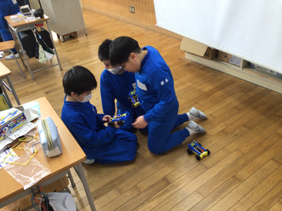 5年生理科は「電流と電磁石」の単元に入りました。下の写真は、キットを走らせながらモーターの仕組みについて学習しているところです。キットがうまく走らない、スピードが遅いなどの課題もでてきて、どこに不具合があるのか探っている子もいます。(うまくいったときは嬉しそうです)