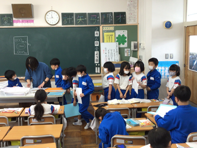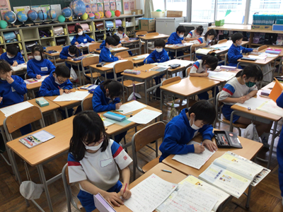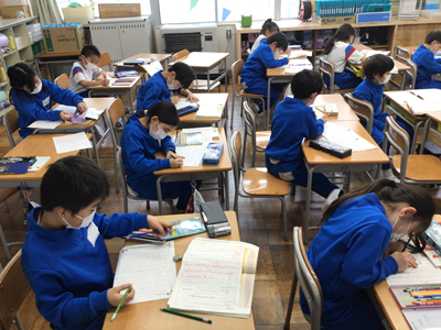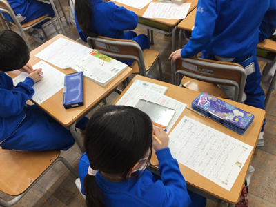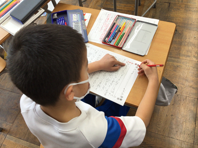 2年生国語の授業風景です。今の単元では、友達の素敵なところを伝える手紙を書いています。文章を見ると、友達への思いがしっかりと手紙に書いてありましたよ。