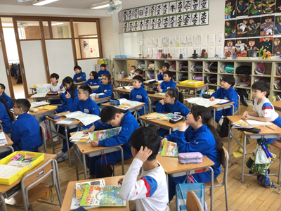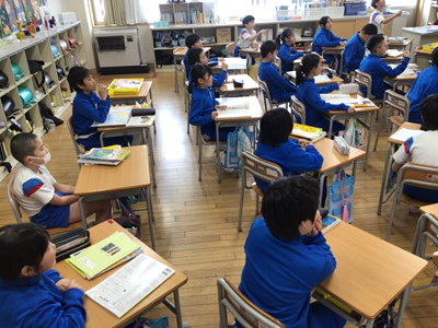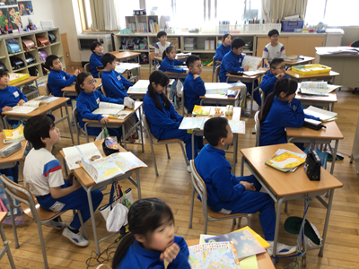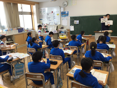 3年生の教室を覗いたら、地図記号の復習をしていました。みんな、しっかりと覚えていましたよ。