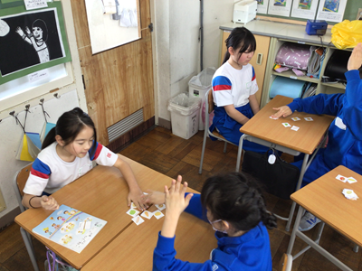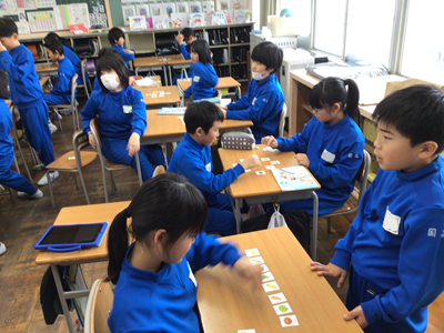 4年生外国語活動の様子です。「What do you want ?」と聞かれ、その答えとなるカードを取りました。前回とは別のクラスの様子をお届けしますね。