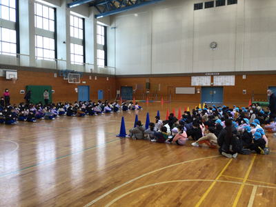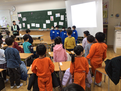 2月6日(金) 新1年生を迎える会で、4月から入学する新1年生が来校しました。現1年生による学校紹介や交流活動が行われ、最初は緊張していた園児たちも徐々にニコニコ笑顔に。4月7日、全校児童で皆さんが入学してくるのを心より楽しみに待っていますよ!(1年生のみなさん、今日の会に向けた練習をしてくれましたね。ありがとうございます。)