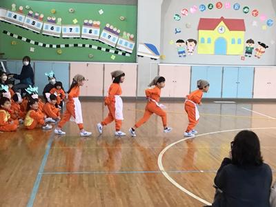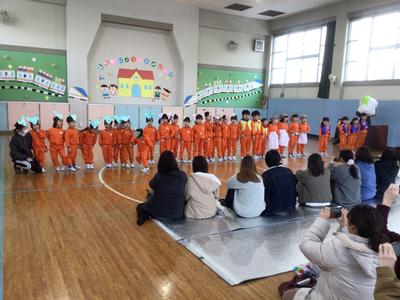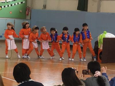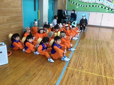 園公開最後は、全園児による劇遊び「大きなかぶ」でした。5歳児のみんながリードしながら、小道具を作ったりセリフを考えたりして取り組んできた劇遊び。役になりきって、かわいく演じました。