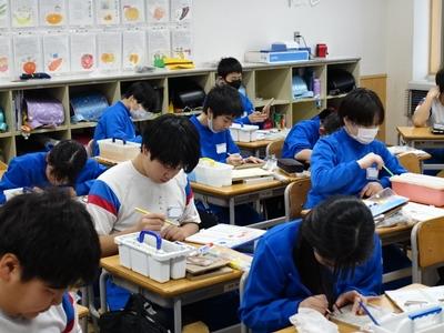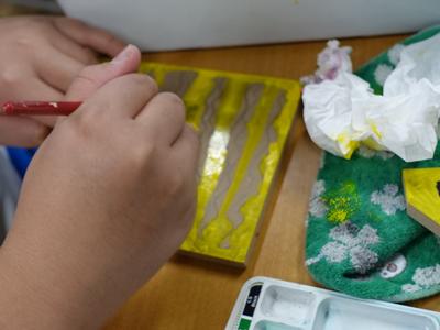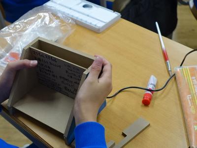 2月初旬から制作に取り組んでいる「タブレットラック」ですが、着色に入ったようです。卒業前に完成予定ですね。