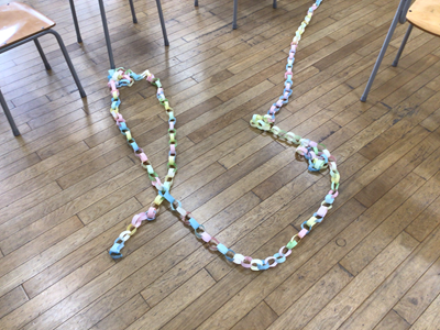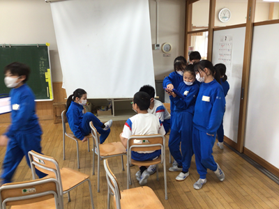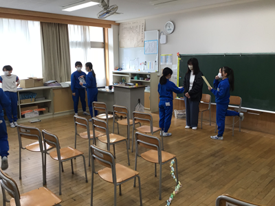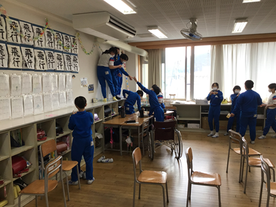 5年生の教室で、明日の送る会に向け、教室の飾り付けが行われています。明日の会、みんなで盛り上げてくださいね‼