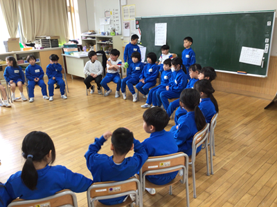 1年生の教室でも、明日の「6年生を送る会」に向けたリハーサルが行われていました。小学校に入って初めての会となります。張り切っていきましょうね‼