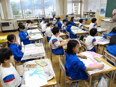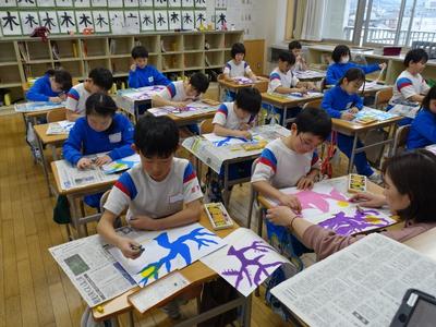 3年生が国語の時間に「モチモチの木」を学習しました。「モチモチの木」は、日本の山に自生する身近な「トチノキ」をモデルにした心温まる物語です。学習したことをもとに、今日は、画用紙いっぱいに自分のイメージする「モチモチの木」を描きました。