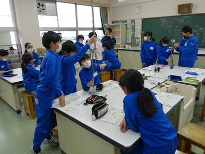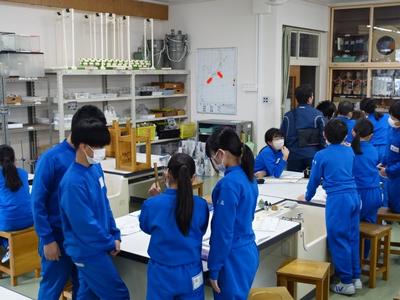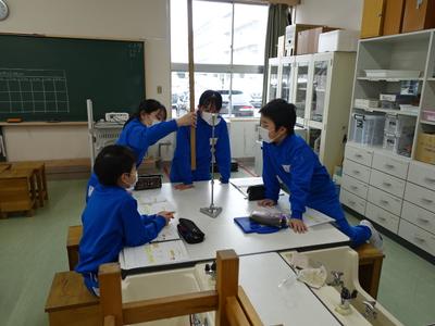 5年生理科の授業風景です。現在は、「ふりこ」の単元を学習しています。今日は、「ふりこの長さと周期の関係」を調べる実験を行いました。
