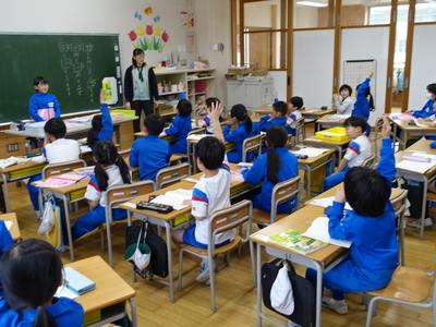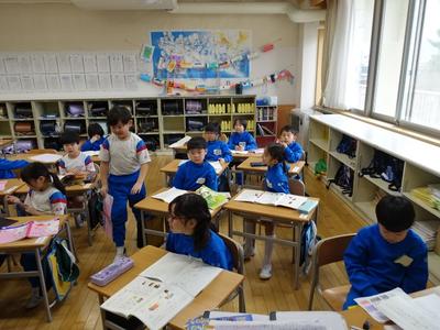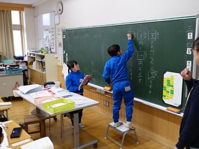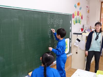 1年生国語の授業風景です。今年1年、多くの漢字を学習しましたが、その中に似ている漢字がありましたね。間違えずに書けたかな?