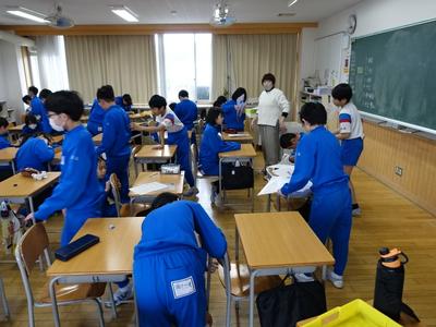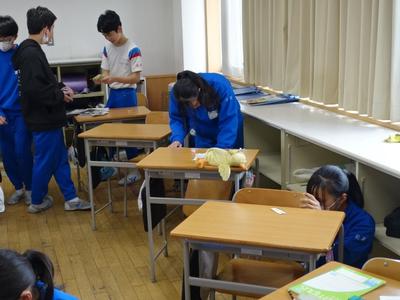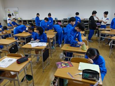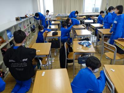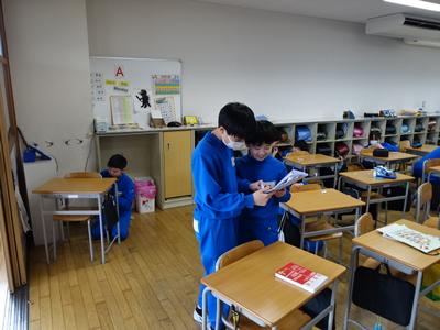 下の写真は、6年生がこれまで使ってきた机と椅子の名札シールをはがしているところです。次に使う人のために、シールの跡もきれいに消していましたよ。(みんな、ありがとう)