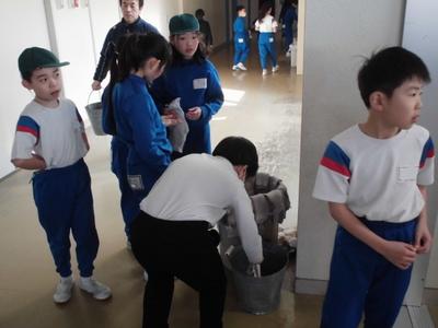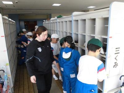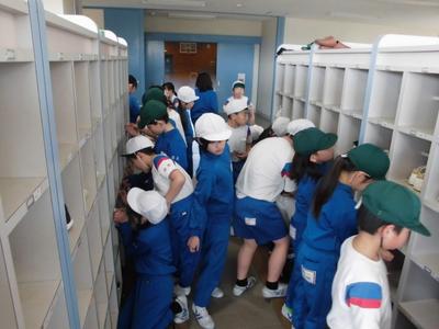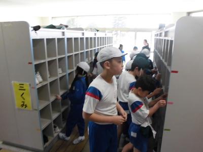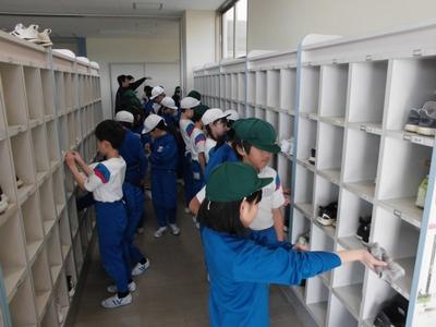 下の写真は、3年生の下足移動の様子です。次に入る人のために、シールをきれいにはがし、下足入れの掃除も行いました。