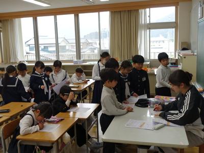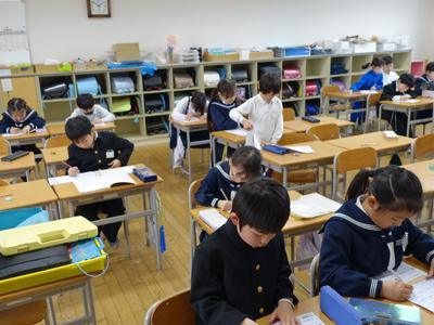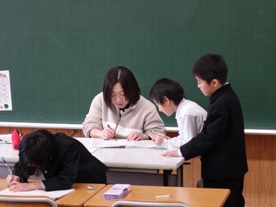 2年生の5時間目の様子です。3学期の授業もあとわずかとなり、これまで解いた問題ができているか、先生に最終チェックをしてもらいました。