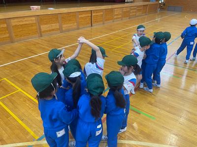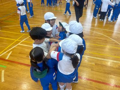 2年生が体育で『体ほぐし』に取り組んでいました。友達と楽しく触れ合いながら、心も体もリラックスな状態にするのがねらいです。『人間知恵の輪』では、あちこちから歓声が上がっていました。