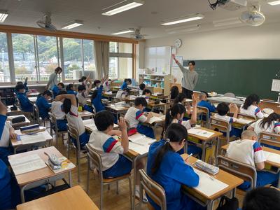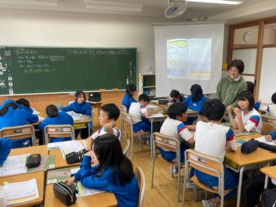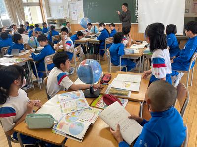 5年生では、『地球儀から発見したこと』『雲と天気の関係を予想』『1/10、1/100、1/1000を調べよう』を学習していました。どのクラスもよく考え、友達の意見をよく聞いていました。